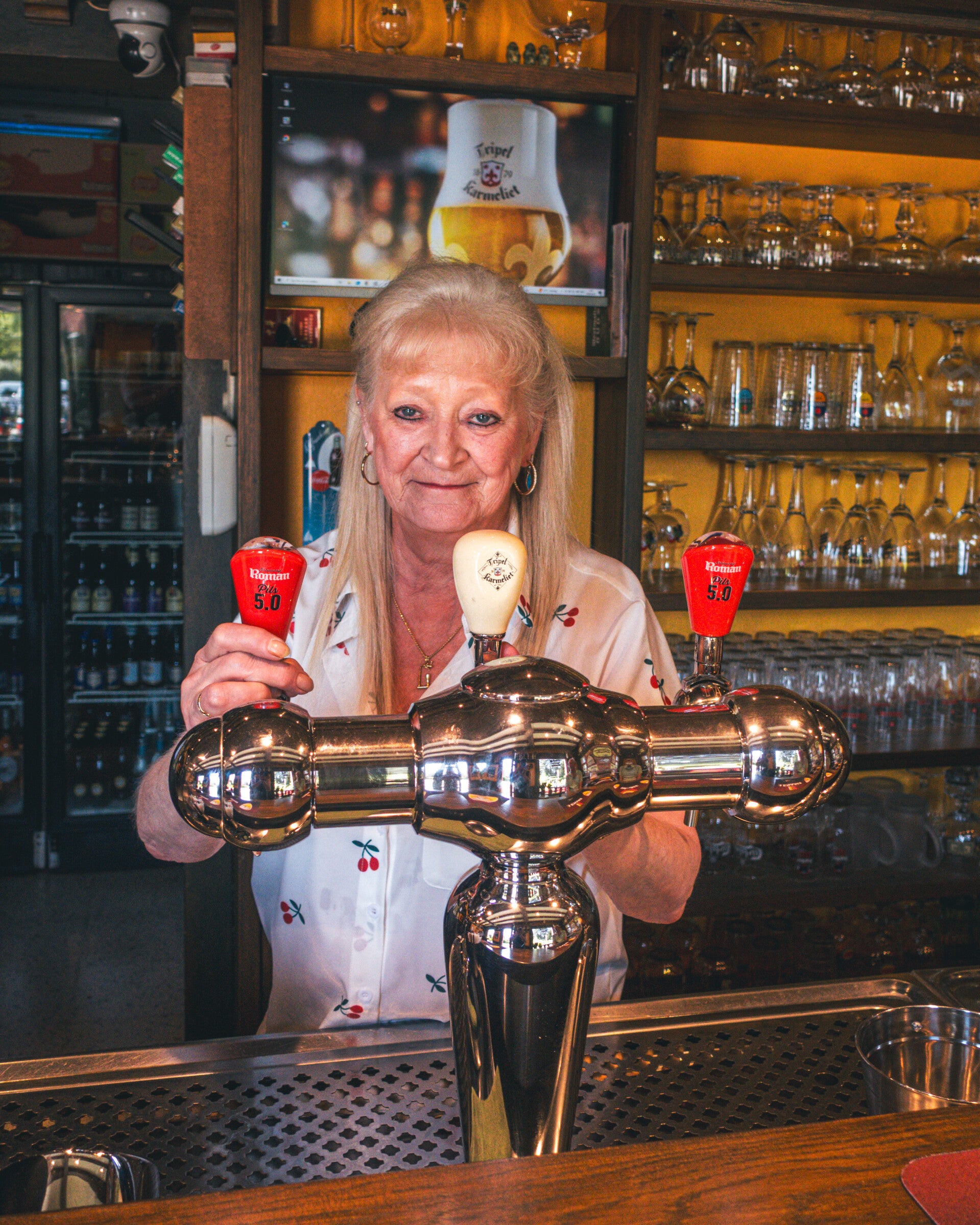 Es war einer dieser Tage, an denen die Sonne unnachgiebig in die Fenster drückt und das Bier schneller schäumt. Innen roch es nach altem Holz, etwas Linoleum, einer Spur Zigarettengeruch, der sich nie ganz vertreiben ließ. Hinter dem Tresen: Monique. Anfang 60, vielleicht etwas älter. Weiße Bluse mit kleinen roten Kirschen, dezent geschminkt, der Lippenstift exakt gezogen. Eine Frau, die sich nicht gehen ließ – aus Prinzip. Ihr Blick ruhig, aber tief. Wie jemand, der gelernt hat, den Schmerz nicht mehr nach außen zu tragen.